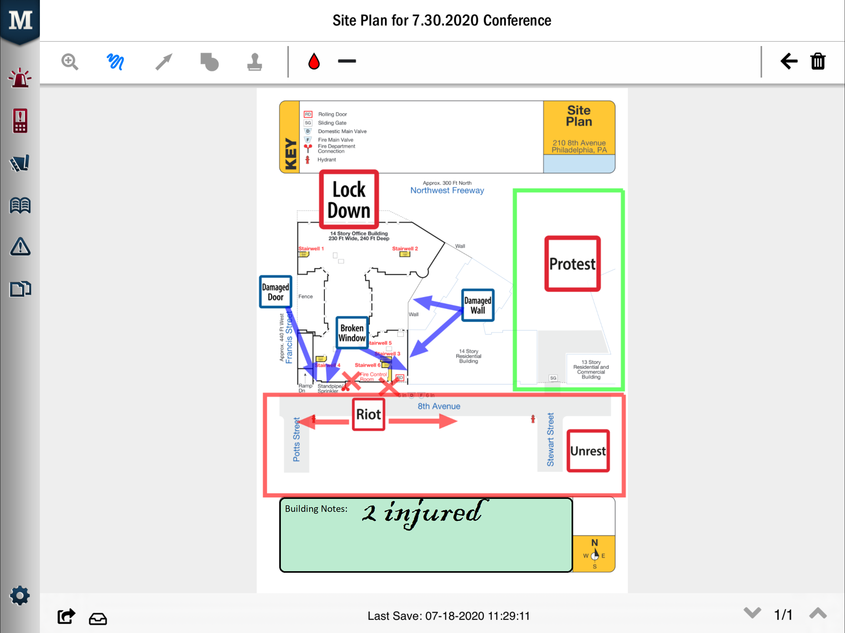 To determine where all your entry/egress routes are, then use our annotator to highlight (in green) safe escape routes and (in red) the routes to avoid that can lead to known danger areas, then share with staff and tenants so everyone knows the big picture